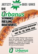 Von unserer Lauffener Metzgerei Jäger stammt in diesem Jahr erstmals auch die "Schwarzriesling-Bratwurst". Diese besondere, exklusiv produzierte Spezialität ist – solange der Vorrat reicht – am Stand des Gesangvereins Urbanus erhältlich.