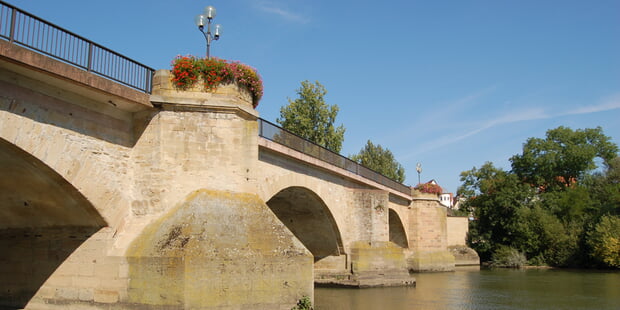 For a long time the Old Neckar Bridge, which connected the village and town of Lauffen at the location of the old fort, was the only permanent Neckar bridge between Cannstatt and Heilbronn. Therefore it was an extremely important trade and transport route. Furthermore the stone segmental arch bridge, which was approximately 225 metres long and had 11 arches, was the longest bridge in Baden-Württemberg at the time. The bridge often suffered destruction and damage by flood waters (e.g. 1529, 1651,1824) and wars (e.g. 1688, 1693, 1799, 1945). During the sewer modernisation (1950-1952) the bridge was shortened by five arches.