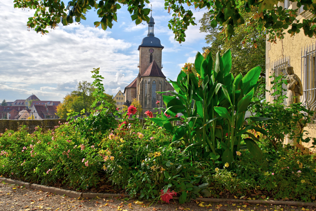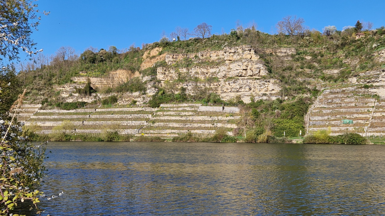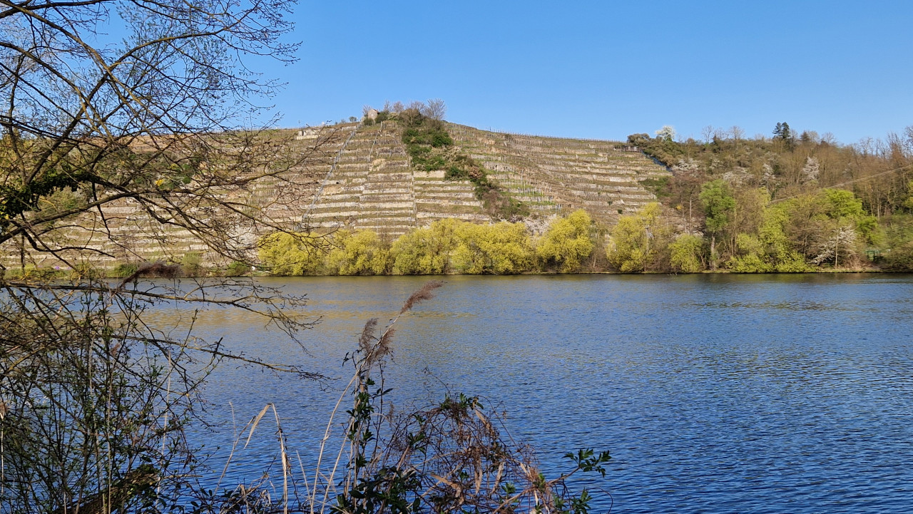 Marco Eberbach - Rote Uferblüte vor der Lauffener Kulisse am Neckar